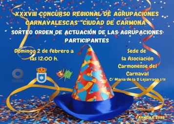 SORTEO XXXVIII CONCURSO REGIONAL DE AGRUPACIONES CARNAVALESCAS CIUDAD DE CARMONA