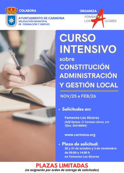 - Plazo de solicitud: 30, 31 de octubre; y 3 de noviembre. De 09:00 a 14:00 horas, en Fomenrto Los Alcores.
